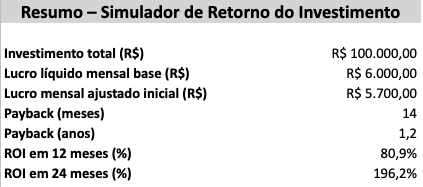 - Saber em quantos meses o negócio se paga