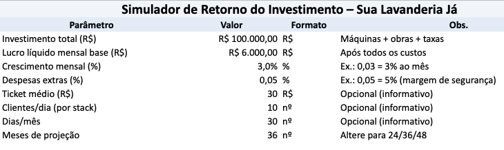 Veja exatamente em quantos meses sua lavanderia se paga sem precisar entender de finanças.